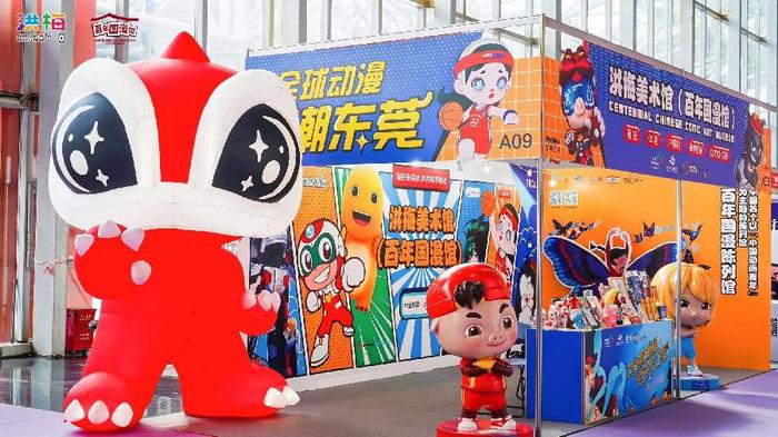 在IP授權展區,洪梅美術館(百年國漫陳列館)攜豬豬俠、菲菲公主、百變校巴、喜羊羊與灰太狼、開心超人、列車超人、奶龍、吾皇貓、虛無邊境-珊瑚、勞拉Laura 等動漫IP閃現,吸引了眾多專業觀眾及市民的目光。“動漫+文旅”的跨界換新助推東莞水鄉洪梅的創造性轉化,展現了新洪梅的人文城市面貌。