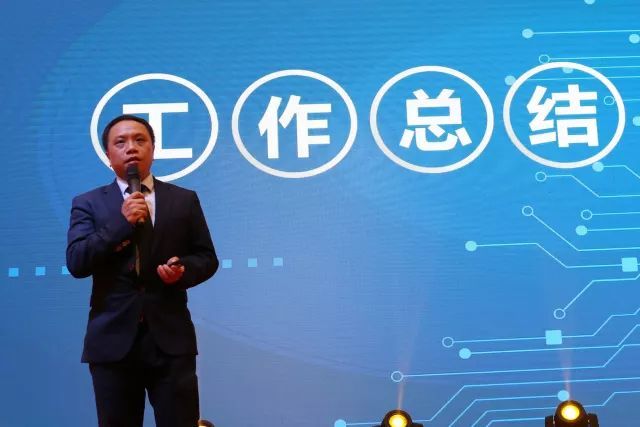 集體合唱結(jié)束后,王照云董事長(zhǎng)信步走上舞臺(tái),向現(xiàn)場(chǎng)嘉賓與鴻威全體員工進(jìn)行工作匯報(bào)。