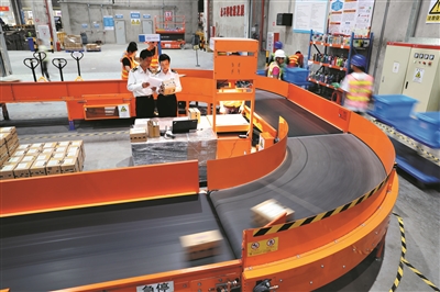 廣州海關(guān)所屬南沙海關(guān)關(guān)員在南沙保稅港區(qū)的跨境電商倉(cāng)庫(kù)巡倉(cāng)監(jiān)管。