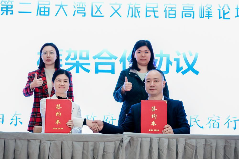 陽東區(qū)文旅局局長梁團(tuán)作陽東區(qū)文化旅游民宿項(xiàng)目推介。隨后,陽東區(qū)副區(qū)長鄒春穎和廣東省民宿行業(yè)協(xié)會會長楊虎分別代表陽東區(qū)人民政府和廣東省民宿行業(yè)協(xié)會簽署框架合作協(xié)議。
